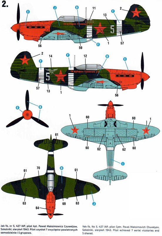该涂装隶属于苏军王牌飞行员Чувелёв Павел Максимович(帕维尔·马克西莫维奇·丘韦廖夫)。他被授予红旗勋章(1942年2月3日、1943年7月22日、1943年9月30日)、一级卫国战争勋章(1985年3月11日)、二级卫国战争勋章(1943年2月9日、1945年3月13日)、红星勋章(1945年5月19日)等以及多枚奖章。